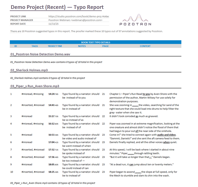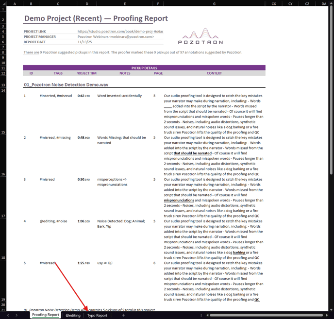 TIP: This report is also included in a Proofing Report! You'll see it listed in another tab of the Excel sheet, labeled "Typo Report."